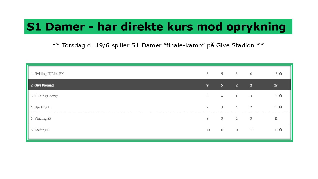 Kom på Give Stadion d. 19/6 og støt S1 damer - det har de fortjent✨⚽⚽