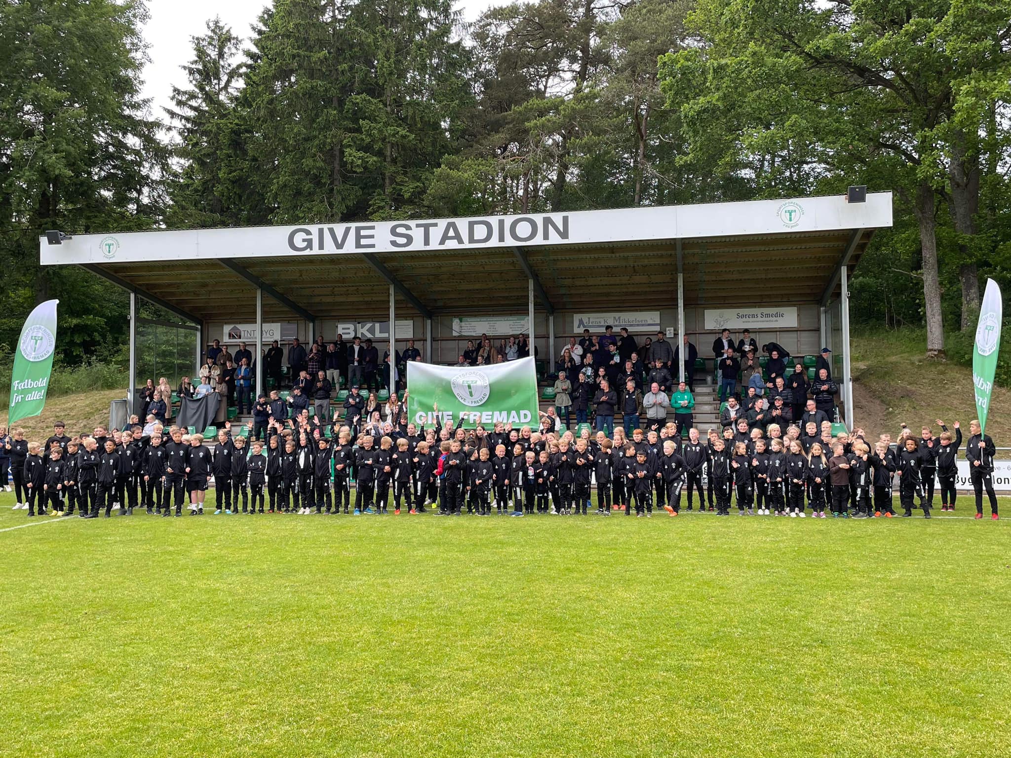 110 børn i alderen 5 til 13 år i deres nye træningsdragter